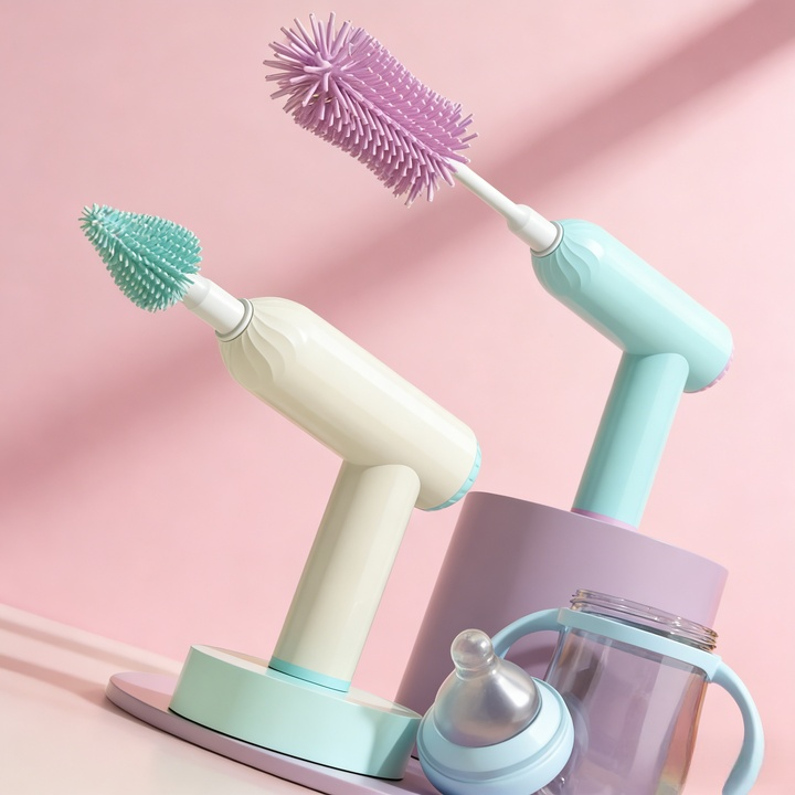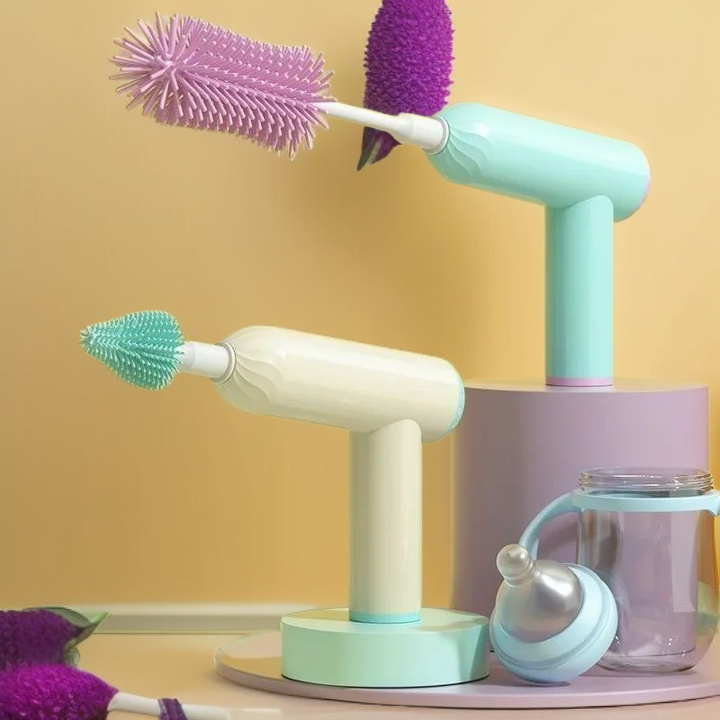 แปรงซิลิโคนไฟฟ้าสำหรับทำความสะอาดขวดน้ำและแก้ว หมุนได้ 360 องศา
